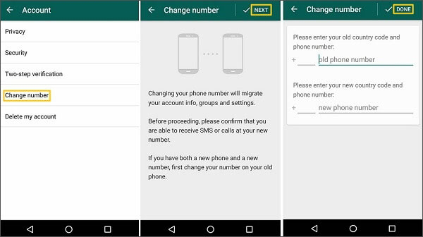 ويمكنك أيضاً تغير رقم الهاتف المسجل بيه الواتس اب كما هو فى الشكل التالى :