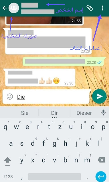 ثالثاً : يمكنك من الإعدادات فعل كل ما ترغب سواء بتغير اسمك او صورتك أو تغير اسم الشخص المتحدث معه أو تغير رقمك أو وضع خلفية للشات كالتالى :
