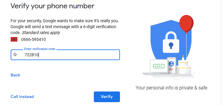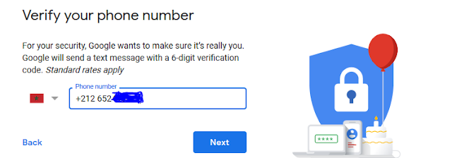ستنقلك الى الصفحة التالية حيت ستضع رقم هاتفك و يجب أن يكون صحيح لانك ستتلقى عليه كود لتفعيله كما يظهر في الصورتين التاليتين :