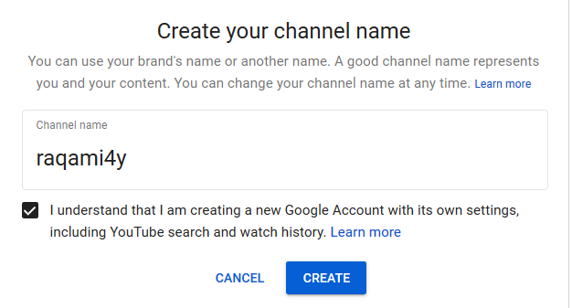 هنا تكتب مكان raqami4y اسم من اختيارك لقناتك تم تضغط على انشاء او create
