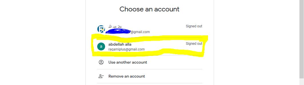 بعدها يأخدك الى صفحة لاختيار الحساب الذي ستسجل به الدخول تختار الحساب الذي انشاءنه سابقا