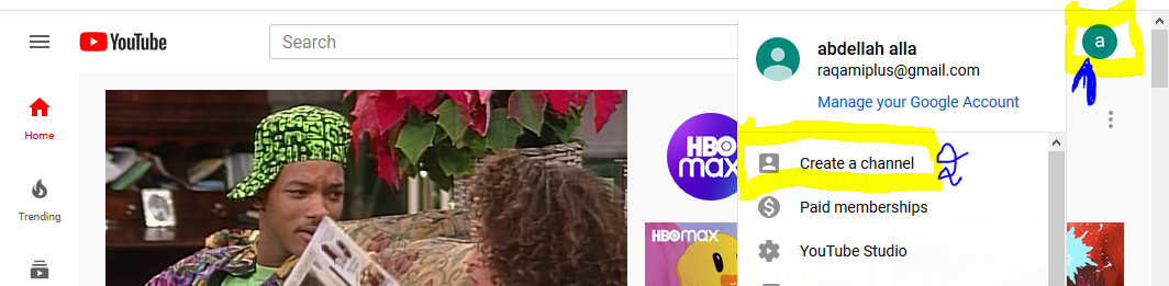 انشاء القناة على اليوتيوب: