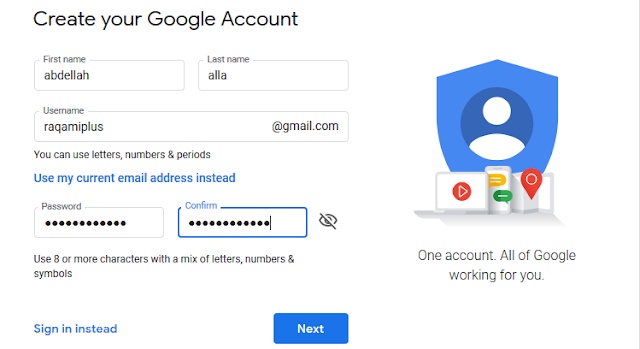 تم تقوم بملأ البيانات الشخصية و ايضا اختيار اسم المستخدم و الذي سيكون ايمايلك كما في الصورة: